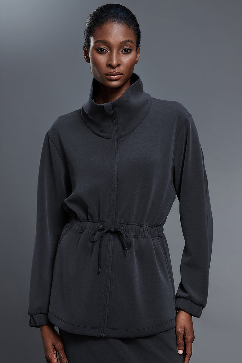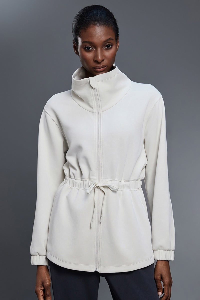 Stand Collar Drawstring Waist Jacket